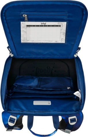 Opakowanie zawiera ergonomiczny tornister szkolny z usztywnioną konstrukcją, zaprojektowany dla dzieci od 1 klasy szkoły podstawowej. Tornister wyróżnia się przesuwnym systemem pleców ERGO ADJUSTABLE do ustawienia w trzech różnych rozmiarach, w pełni regulowanymi szelkami oraz praktycznym odchylanym systemem otwierania.