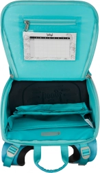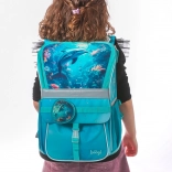 Tornister szkolny Zippy Delfin jest lekki i ergonomiczny, idealny dla dzieci od 1. klasy szkoły podstawowej. Tornister posiada przesuwany system tylny ERGO ADJUSTABLE, który pozwala na ustawienie w trzech rozmiarach, umożliwiając wzrost wraz z dzieckiem. Ma w pełni regulowane paski, wewnętrzną przestrzeń z gumką, unikalny system wymiennych odznak oraz bezpieczne elementy odblaskowe.