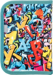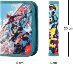 Ten klasyczny jednopoziomowy piórnik z dwiema klapkami wykonano z materiału z recyklingu i oferuje miejsce na wszystkie niezbędne przybory szkolne. Przestronna konstrukcja umożliwia łatwe rozłożenie, co ułatwia orientację wewnątrz. Piórnik zawiera również: