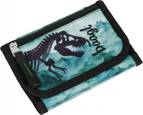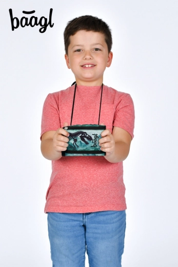 Stylowy dziecięcy portfel Baagl z motywem dinozaura i możliwością noszenia na szyi oferuje praktyczny układ i bezpieczne użytkowanie. Dzięki regulowanemu sznureczkowi z bezpieczną klamrą, zapięciu na rzep oraz oddzielnej kieszonerce na drobne jest idealny do codziennego użytku w szkole i na zajęciach. Wykonany z wytrzymałego materiału z recyklingu.