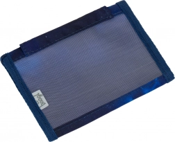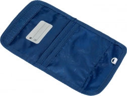 Portfel wykonany jest z tkaniny z recyklingu ze wzmocnionymi krawędziami dla dłuższej żywotności. Regulowany sznureczek z bezpiecznym zapięciem umożliwia wygodne i bezpieczne noszenie na szyi, a rzep ułatwia szybkie otwieranie i zamykanie.