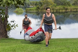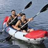Wyrusz na wodę z dwuosobowym dmuchanym kajakiem Bestway, idealnym towarzyszem na rekreacyjne wycieczki po jeziorach lub basenach. Ten kajak wykonany jest z trwałego materiału winylowego, który jest odporny na uszkodzenia. Przestronny i wygodny kokpit wyposazono w dwa dmuchane siedzenia z miękkimi oparciami, co zapewnia komfort nawet podczas długich wycieczek.
