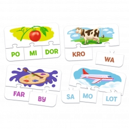 Sylaby oferuje przyjazny sposób, w jaki dzieci mogą nauczyć się rozpoznawać litery, dzielić słowa na sylaby i tworzyć z nich nowe wyrazy. Ta gra rozwija pamięć, stymuluje wyobraźnię i wzbogaca słownictwo. To idealny sposób, aby połączyć naukę z radością odkrywania języka!