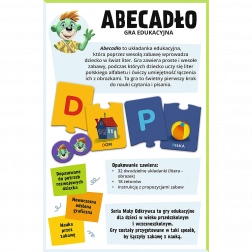Abeceda to edukacyjna układanka dla przedszkolaków, która w zabawny sposób wprowadza dzieci w świat liter. Dzięki grze dzieci uczą się rozpoznawać litery polskiego alfabetu i łączyć je z obrazkami.