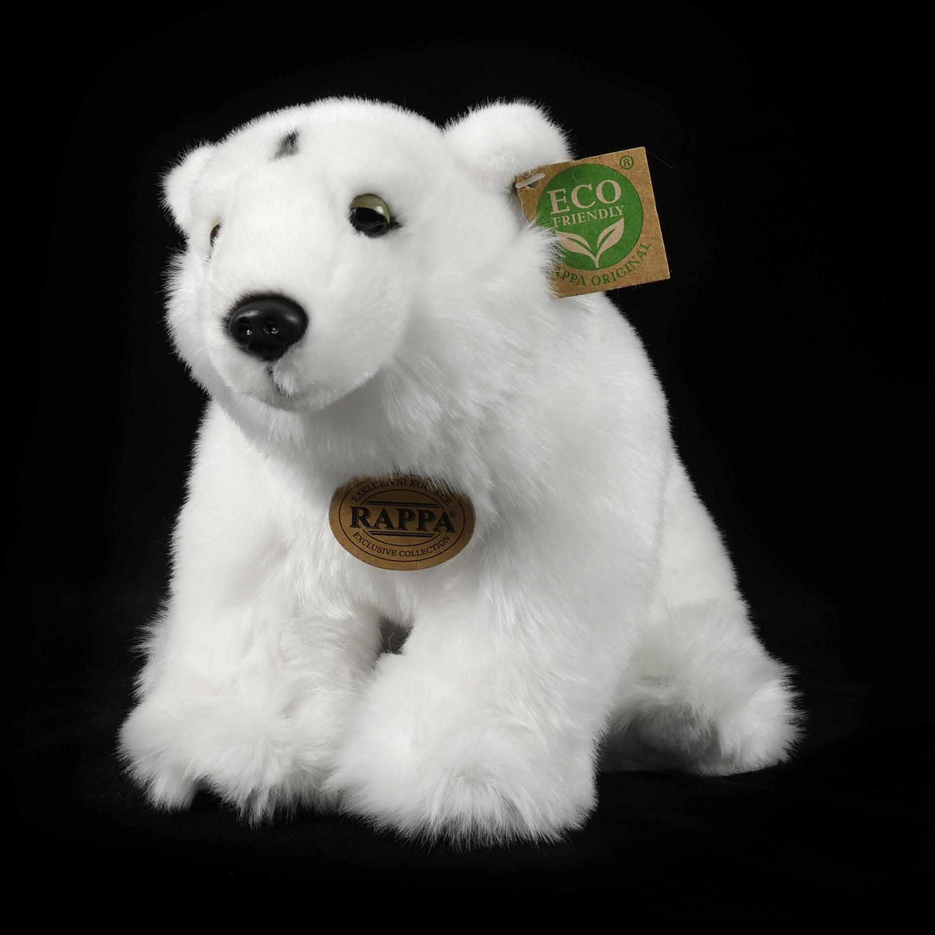Pluszowy niedźwiedź polarny marki Rappa wykonany jest z materiałów zrównoważonych i wygląda jak żywy. Jego wysokość 30 cm jest idealna dla dzieci już od urodzenia.