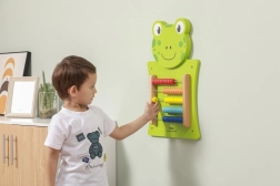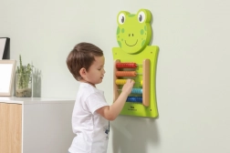 To żabie liczydło łączy figlarną estetykę z praktyczną nauką. Pięć poziomych prętów z kolorowymi koralikami zachęca dzieci do przesuwania i liczenia, ćwicząc małą motorykę, koordynację oko–ręka oraz logiczne myślenie. Wykonanie ścienne oszczędza miejsce, a jednocześnie jest zawsze pod ręką.