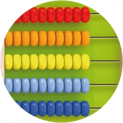 Pięć rzędów koralików w intensywnych kolorach zachęca dzieci do naturalnego odkrywania liczb, dodawania i odejmowania w formie zabawy.