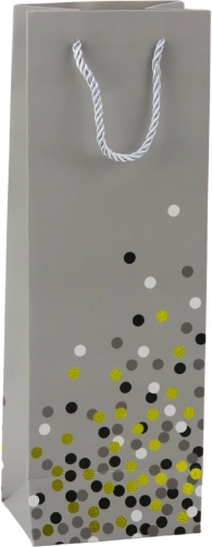Torebka wykonana jest z wysokiej jakości papieru o odpowiedniej gramaturze, co zapewnia jej odporność na gniecenie oraz dobrą nośność. Sznurkowe uchwyty są wygodne do przenoszenia i umożliwiają bezpieczne trzymanie zawartości. Nowoczesny design z delikatnymi, błyszczącymi akcentami nadaje torebce wyjątkowy charakter.