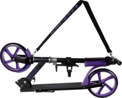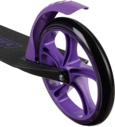 Ta czarno–fioletowa hulajnoga to świetny wybór dla dzieci od 8 lat i starszych użytkowników, którzy chcą wygodnych i bezpiecznych przejazdów miejskich. Duże koła 200 mm tłumią nierówności i zapewniają stabilność, a antypoślizgowy podest i niezawodny hamulec nożny dają kontrolę w każdej sytuacji. Mechanizm składania i regulowany pasek ułatwiają transport i przechowywanie.