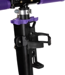 Pięcioramienne fioletowe obręcze i szerokie opony PU zapewniają płynne toczenie i stabilność na miejskich chodnikach oraz nierównościach.