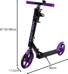 Lekka miejska hulajnoga KRUZZEL z dużymi kołami 200 mm zapewnia płynną jazdę po chodnikach i na nierównościach. Dzięki składanej konstrukcji, regulowanej kierownicy (87–92–98 cm) i hamulcowi nożnemu oferuje bezpieczeństwo, komfort oraz łatwe przenoszenie przy pomocy regulowanego paska. Antypoślizgowy deck, dodatki w zestawie oraz łożyska ABEC-7 zapewniają pewność oraz cichą, gładką pracę.