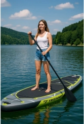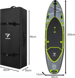 Wyjątkowa deska paddle board SUP Trizand o długości 350 cm to świetny wybór dla początkujących. Dzięki szerokiej i stabilnej konstrukcji zapewnia łatwą obsługę i bezpieczeństwo podczas pierwszych przejazdów. Zyskaj wszystko, czego potrzebujesz do pływania, dzięki kompletnemu zestawowi z regulowanym wiosłem, siedziskiem, pompką i dodatkowymi akcesoriami.