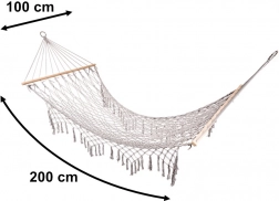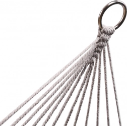 Wykonany z wysokiej jakości bawełnianych włókien (65%), które zapewniają dużą wytrzymałość i nośność do 250 kg. Dzięki eleganckim frędzlom i szaremu kolorowi idealnie wpasowuje się w każde otoczenie ogrodowe.