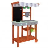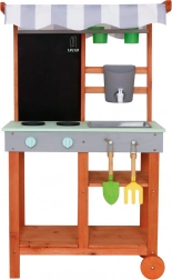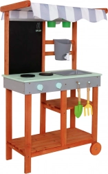 Ta trwała i stabilna kuchnia została specjalnie zaprojektowana do użytku na zewnątrz, aby wytrzymała zarówno w intensywnej zabawie, jak i przy kaprysach pogody. Kuchnia jest wolna od ostrych krawędzi, a jej ergonomiczna konstrukcja jest bezpieczna dla każdego młodego kucharza.