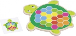 Poznaj Drewnianą układankę żółw od Goki, która oferuje wyzwania edukacyjne i dydaktyczne dla małych i dużych graczy. Twoim zadaniem jest układać elementy zgodnie z kartami z szablonami, zarówno w łatwiejszej wersji kolorowej, jak i w trudniejszej wersji na niebieskiej stronie kart.
