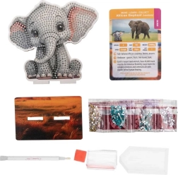 Malowanie diamentowe Safari: Słoń jest idealne dla tych, którzy szukają nowego sposobu na relaks i zabawę. Ten wspaniały produkt pozwoli Ci tworzyć piękne obrazy, przyklejając drobne kamienie na wcześniej oznaczone miejsca.