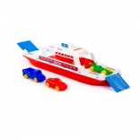 Ten prom z autkami to świetny wybór dla dzieci, które uwielbiają bawić się samochodzikami. Prom ma długość 45 cm i zawiera 4 kolorowe autka, gotowe na przygody. Dodatkowo prom ma odchylane rampy, które umożliwiają łatwy wjazd i zjazd samochodzików.