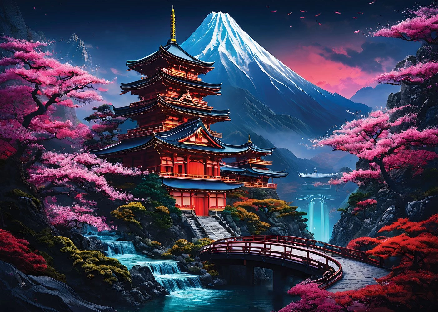 Odkryj piękno japońskiej kultury z puzzlami Duch Japonii, które oferują dwa obrazy po 500 elementów. Każdy obraz to dzieło sztuki oddające istotę Japonii.