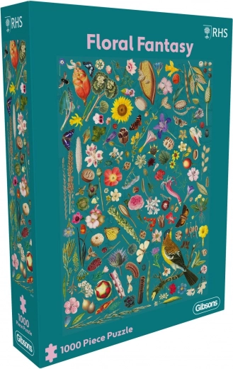 Ciesz się układaniem puzzli Kwiatowa fantazja od Gibsons, 1000 elementów, wymiary 49 × 68 cm.