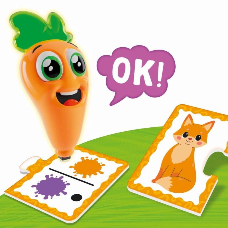 Carotina Mówiące Pióro to idealny towarzysz dla małych dzieci! Pomaga im uczyć się kolorów i odkrywać pierwsze liczby dzięki zabawnym interaktywnym quizom.