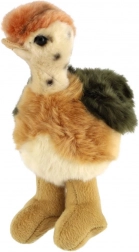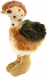 To pluszowe pisklę strusia zachwyca przyjemną w dotyku fakturą i realistycznym wykończeniem kolorystycznym w odcieniach kremu, brązu i zieleni. Dzięki kompaktowym 20 cm dobrze leży w dziecięcej rączce, łatwo je przenosić i staje się świetnym towarzyszem podróży.