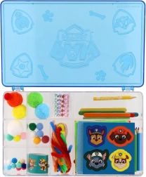 Przezroczyste pudełko z tłoczonym logo PSI PATROL bezpiecznie przechowa wszystkie akcesoria. Dzięki segmentowanym przegródkom wszystko pozostaje uporządkowane i gotowe do tworzenia w domu i w podróży.