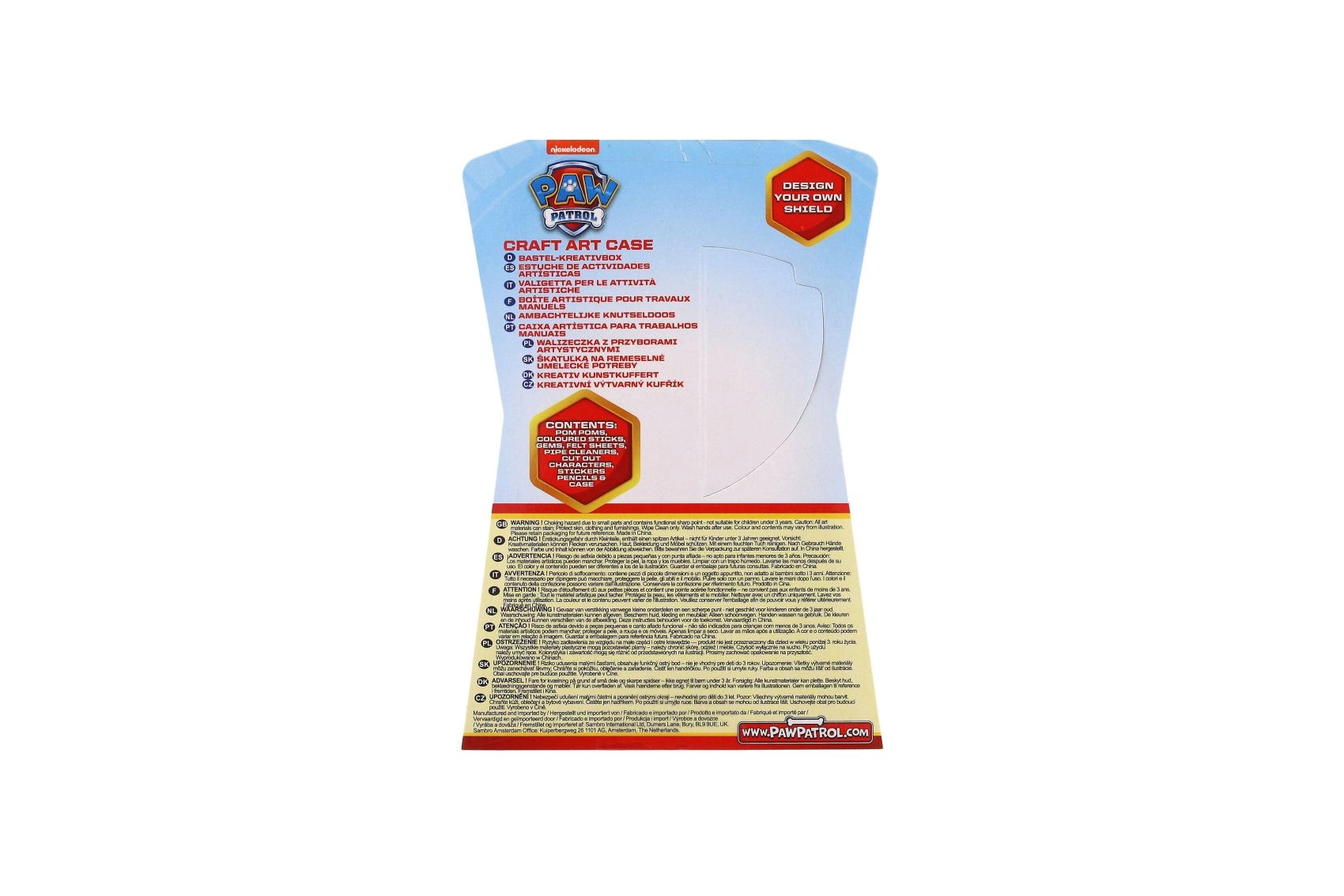 W środku znajdziesz barwny miks akcesoriów do kolażowania, klejenia i rysowania: miękkie pompony, puszyste druciki (chenille), kształty z pianki lub filcu, patyczki, kredki oraz naklejki z ulubionymi psimi bohaterami. W komplecie są też karty i aktywności typu „zaprojektuj własną tarczę”, które rozwijają kreatywność i umiejętności.