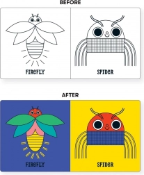 Kąpielowa książeczka Owady zamienia każdą kąpiel w zabawną przygodę odkrywania. Wystarczy zanurzyć ją w wodzie, a czarno-białe ilustracje magicznie rozbłysną kolorami. Dzieci podczas zabawy trenują uwagę, umiejętności poznawcze i małą motorykę.