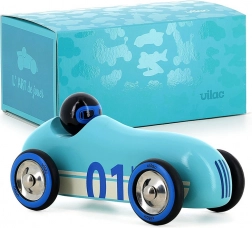 Vilac prezentuje unikalny drewniany samochód w pięknym turkusowym odcieniu, idealny do zabawy, a jednocześnie jako atrakcyjny element kolekcjonerski lub dekoracja wnętrza. To autko o obłych, aerodynamicznych kształtach zostało zaprojektowane nie tylko z myślą o dziecięcej rozrywce, ale także o rozwoju ważnych umiejętności. Podczas zabawy dzieci rozwijają małą motorykę, zręczność i kreatywność, mogą naśladować dźwięki silnika, parkować lub urządzać przejażdżki. Wspólna zabawa dodatkowo wzmacnia umiejętności takie jak dzielenie się i współpraca. Każde autko wykonano z solidnego drewna bukowego i ręcznie polakierowano bezpiecznymi farbami we Francji. Dostarczane w ozdobnym pudełku, stanowi doskonały prezent lub element kolekcji.