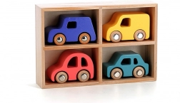 Autka są częścią serii Vilacity, skupionej na transporcie i środkach transportu, a wszystkie elementy są ze sobą kompatybilne. Wykonane z litego drewna, co gwarantuje długą żywotność, autka umieszczone są w drewnianej półeczce, która będzie świetnym uzupełnieniem pokoju dziecięcego lub sali zabaw.