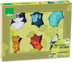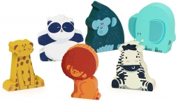 Drewniane figurki są solidne, idealne do dziecięcych rąk i zapewniają zabawę bez ekranów, z naciskiem na samodzielne odkrywanie. Figurki są przechowywane w pięknym drewnianym pudełku z motywami natury i prześwitami, które wprowadzą odrobinę dzikiej przyrody prosto do pokoju dziecięcego. Zestaw zawiera: 6 figurek – lew, panda, goryl, słoń, zebra i pantera.