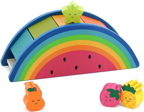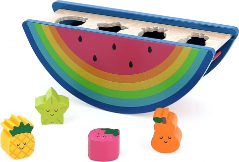 Drewniana układanka w kształcie arbuza od Andy Westface to idealna zabawka Montessori wspierająca rozwój umiejętności dziecka. Zawiera cztery różne owocowe kształty do wkładania.