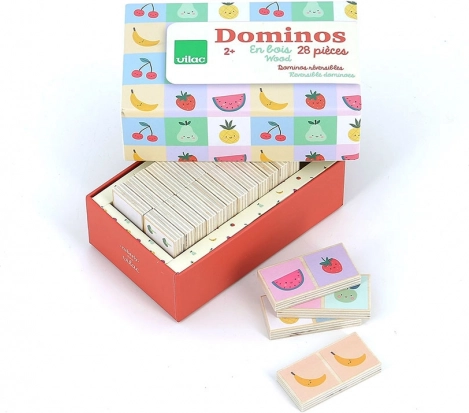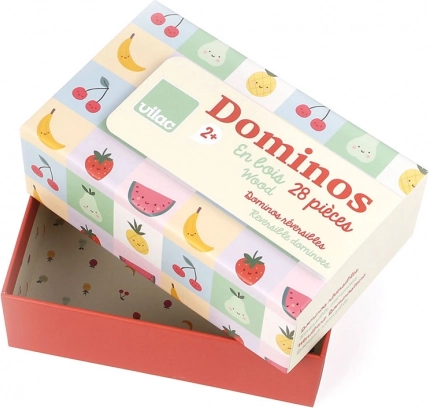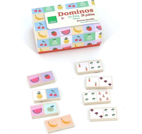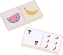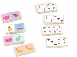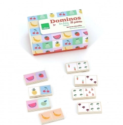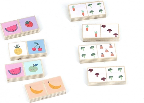 Drewniane domino z motywem owoców i warzyw to świetna gra dla dzieci, która nie tylko w zabawny sposób stymuluje pamięć i spostrzegawczość, ale także rozwija małą motorykę i koordynację ręka-oko.