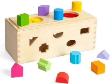 Pudełko jest częścią edukacyjnej serii zabawek Montessori, wykonane z wysokiej jakości, zrównoważonego drewna z certyfikatem FSC® i pokryte nietoksycznymi farbami oraz lakierami. Pudełko ma zdejmowaną pokrywkę dla łatwiejszej obsługi. Spełnia aktualne europejskie normy bezpieczeństwa.