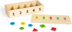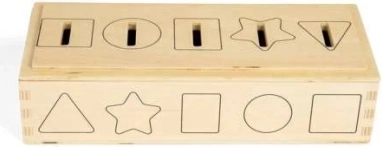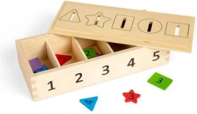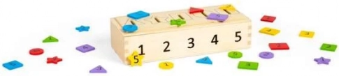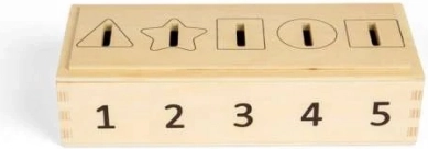 Użyj tej innowacyjnej skrzynki, aby ćwiczyć rozpoznawanie liczb, kolorów i kształtów. Dzieci mogą wrzucać żetony w różnych kolorach i kształtach, oznaczone liczbami od 1 do 5, do odpowiednich otworów. Dzięki dwustronnej, zdejmowanej pokrywie manipulacja jest prosta i przyjemna.