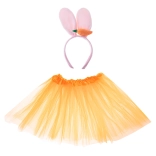 Zawiera pomarańczową spódniczkę tutu oraz opaskę z uszkami i marchewką.