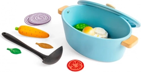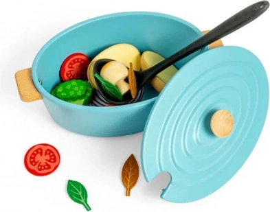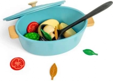 Przygotuj pyszny posiłek dla rodziny z dziecięcym naczyniem do zapiekania i bogatymi akcesoriami. Ta zabawka oferuje wiele rodzajów drewnianych warzyw i pomaga dzieciom rozwijać umiejętności społeczne oraz kreatywność.