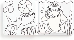 Książeczka zawiera proste kontury życia morskiego, takie jak rekiny i koralowce, co pomaga dzieciom odkrywać cuda oceanu.