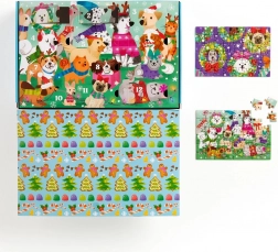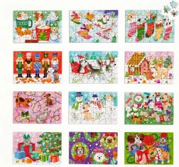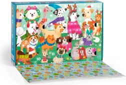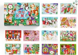 Przedstawiamy zabawny zestaw puzzli, który zamienia oczekiwanie na święta w odliczanie pełne niespodzianek i radości. Każde okienko zawiera 48-elementowe mini puzzle z obrazkami piesków, które uczestniczą w zimowych zabawach i świątecznych przygotowaniach, jak jazda na sankach, budowanie bałwana czy picie gorącej czekolady.
