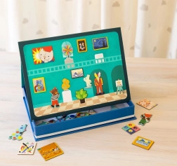 Przedstawiamy magnetyczny teatr Moje Muzeum od Petit Collage, który jest idealny dla małych miłośników sztuki i kreatywności. Dzięki temu przenośnemu zestawowi dzieci mogą stylizować własne muzeum, ozdabiać kultowe obrazy i rzeźby oraz oprowadzać ciekawskie zwierzęce odwiedzające.