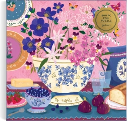 Odkryj eleganckie puzzle z motywem amerykańskiej ilustratorki Joy Laforme: nakryty stół z kwiatami, owocami i smakołykami. Puzzle mają specjalną folię z metalicznym połyskiem, dzięki której wzór wygląda jak ze złota i srebra. Elementy są trwałe, precyzyjne i odporne. Wykonane z materiałów z certyfikatem FSC i recyklingu, zadrukowane nietoksycznymi farbami – świetny prezent i relaks na deszczowe dni.