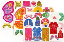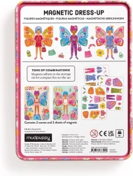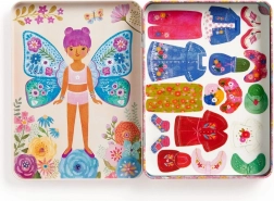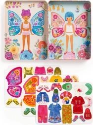 Zestaw zawiera dwie ilustrowane sceny z motylimi panienkami, które czekają na ubieranie. Wypróbuj więcej niż 40 magnesów z ubraniami i motylimi skrzydłami na trzech kartach. Każdy element można łączyć według własnej wyobraźni.