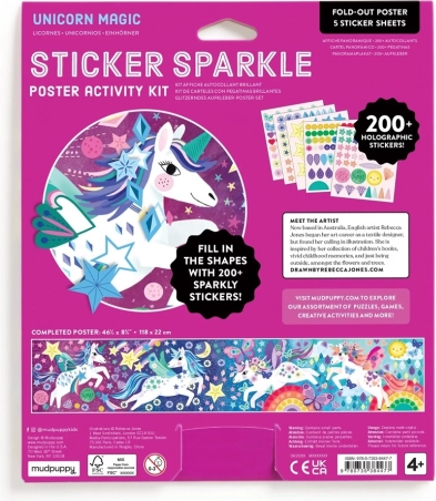 Rozwijaj wyobraźnię swojego dziecka dzięki zestawowi błyszczących naklejek, który oferuje magiczną przygodę z ponad 200 holograficznymi naklejkami i kolorową sceną pełną jednorożców.
