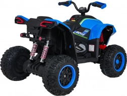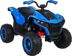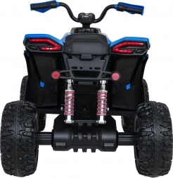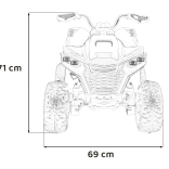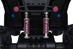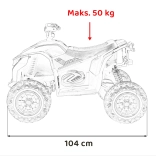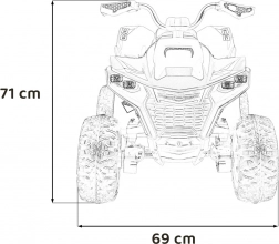 Ten elektryczny quad został zaprojektowany z myślą o zabawie i bezpieczeństwie. Wydajny napęd 4×35 W w połączeniu z płynnym startem i dwustopniową prędkością zapewnia pewność i komfort podczas jazdy. Dzięki dużym kołom EVA (31 × 14 cm) oraz podwójnym tylnym amortyzatorom z regulacją poradzi sobie także na nierównym terenie.