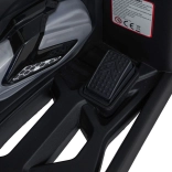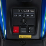 Panel multimedialny z Bluetooth, USB, MP3 i radiem FM pozwoli odtwarzać ulubione melodie i bajki. Siedzisko z eko skóry z pasami bezpieczeństwa trzyma dziecko wygodnie i bezpiecznie. Rodzice zachowują kontrolę dzięki pilotowi 2.4G z 3 prędkościami i przyciskiem bezpieczeństwa Stop.