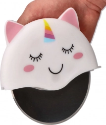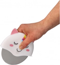 Ten oryginalny krajacz do pizzy zachwyci miłośników zabawnych akcesoriów kuchennych. Nierdzewne kółko o dużej średnicy gładko przejedzie przez chrupiący spód i ser, a solidna rączka z wytrzymałego plastiku zapewni pewny chwyt. Uroczy jednorożec z tęczowym rogiem doda Twojemu stołowaniu odrobinę magii.