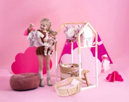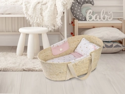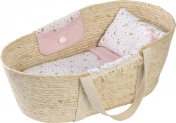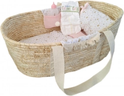 Ten piękny koszyk Mojżesza jest wyposażony w materiałowe kieszonki po obu stronach i zawiera ozdobną kołderkę, poduszkę oraz materacyk. Nadaje się dla lalek o wielkości 40–45 cm, a także świetnie sprawdzi się jako miejsce do przechowywania innych zabawek, takich jak pluszaki.