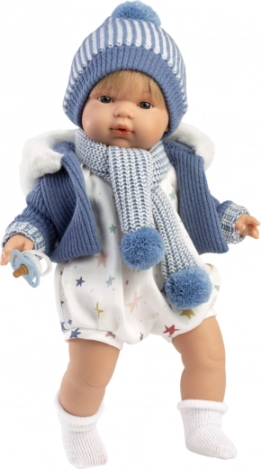 Głowa i kończyny wykonane są z wysokiej jakości miękkiego winylu, co nadaje realistyczny wygląd. Po wyjęciu smoczka z ust lalka mówi „mama”, „tata” i wydaje dźwięk płaczącego dziecka, który można ukoić magnetycznym smoczkiem.
