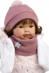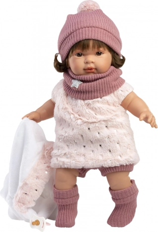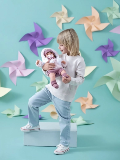 Wystarczy wyjąć blokadę i lalka od razu zacznie działać! Po wyjęciu smoczka z ust lalka zacznie wypowiadać proste słowa i wydawać realistyczne dźwięki płaczu. Dziecko nauczy się, jak uspokoić płacz za pomocą smoczka. Lalka jest ręcznie wykonana w Hiszpanii i dostarczana w pudełku prezentowym, idealnym na każdą okazję.