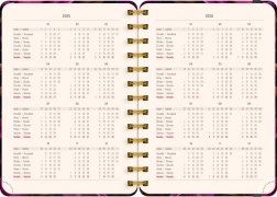 Praktyczny 18‑miesięczny terminarz w stylowym wzornictwie z motywem fioletowych kwiatów. Idealny dla każdego, kto chce zachować przejrzystość i dobrą organizację w latach 2025/2026.